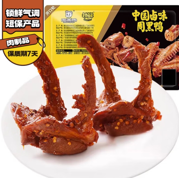36.9元包邮!自营周黑鸭 任选5件随单赠鸭脖1盒