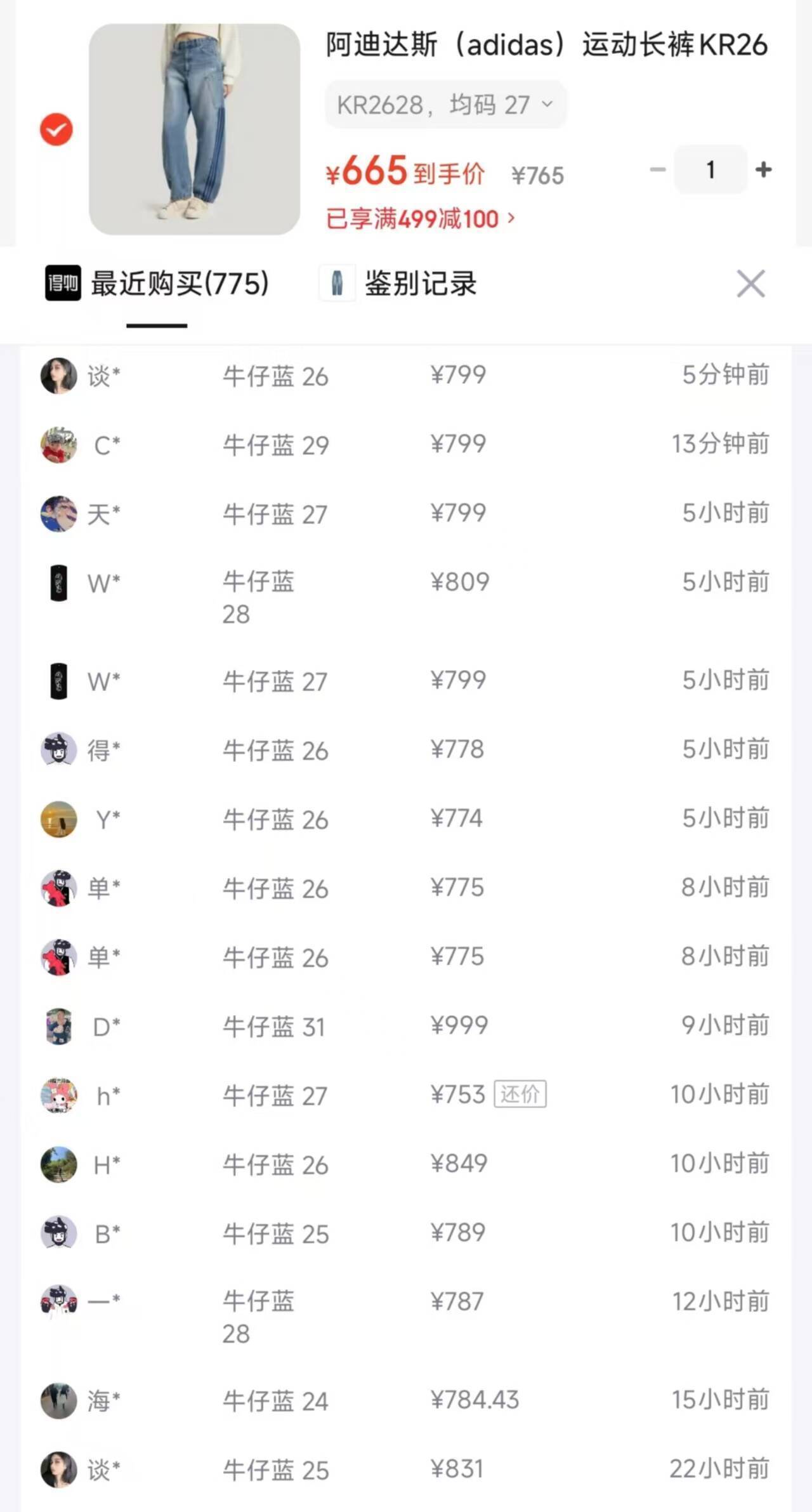 阿迪女款牛仔裤到手 665 元,立省 134 元!
