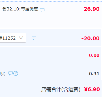 在售价26.9元,领20元券,实付6.9元包邮。