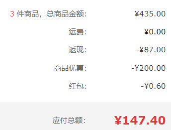 在售价145元,产品页面价格下领399-200元券,叠加店铺2件8折优惠,拍3件实付148元包邮,折49.3元每件。