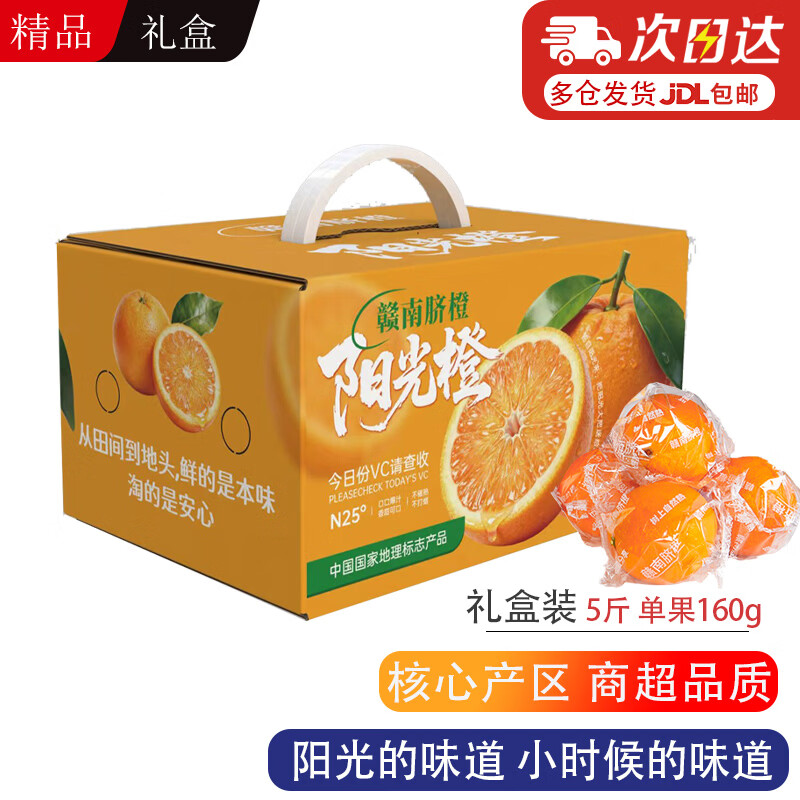 自营京觅江西赣南脐橙5斤礼盒装,首购到手13.9元