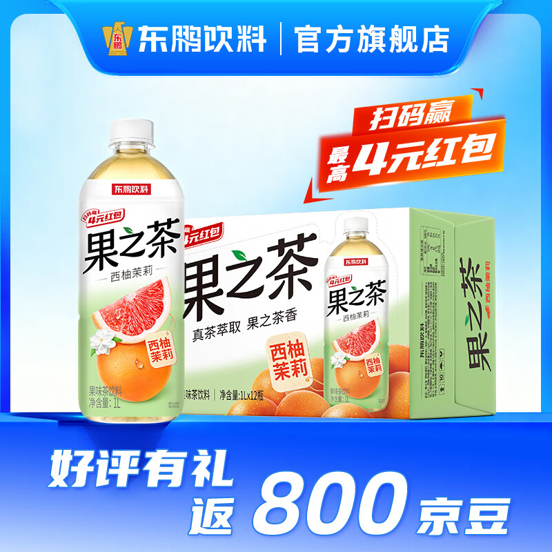 东鹏特饮西柚茉莉1L*12瓶整箱,最终到手价42.9元