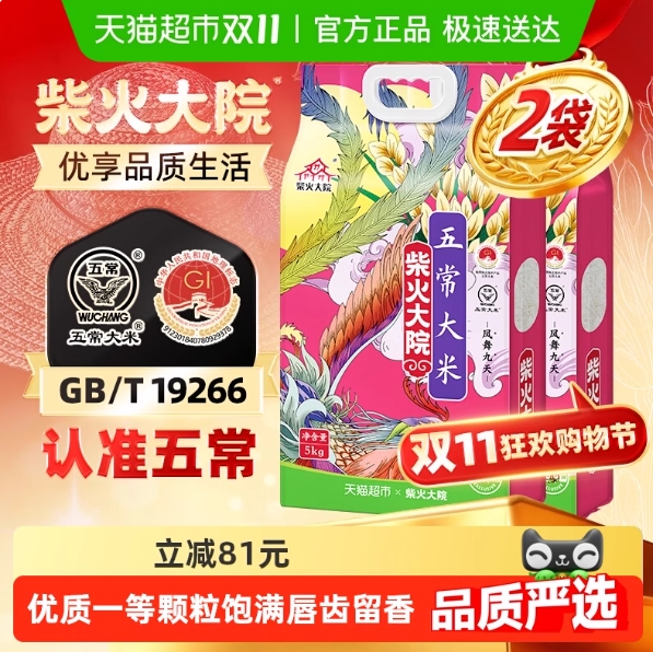 50.5元包邮!柴火大院五常大米5kg*2袋