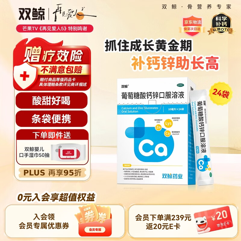 自营双鲸葡萄糖酸钙锌口服液 66.6元抢72袋装
