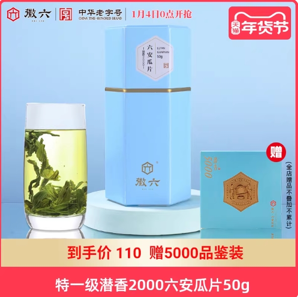 43元!徽六 潜香2000 2025新茶 特一级 六安瓜片罐装 50g 赠5000品鉴装