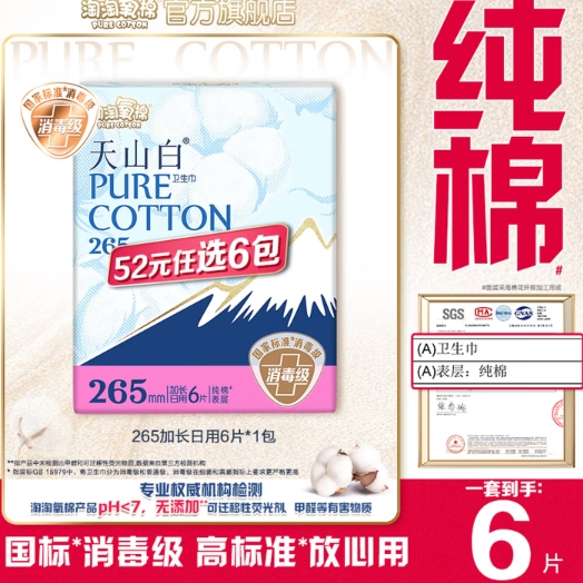 25.9元包邮!淘淘氧棉 天山白 日用/夜用 卫生巾/安睡裤组合 多系列任选6件