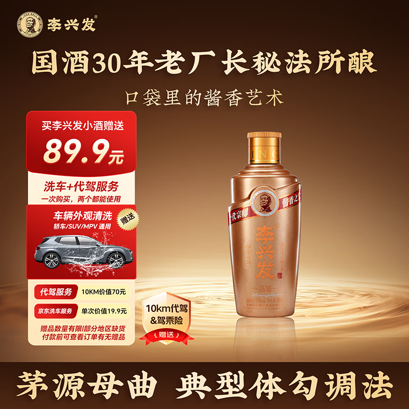 李兴发品鉴小酒酱香型53度白酒100ml 19.9元+送10公里代驾