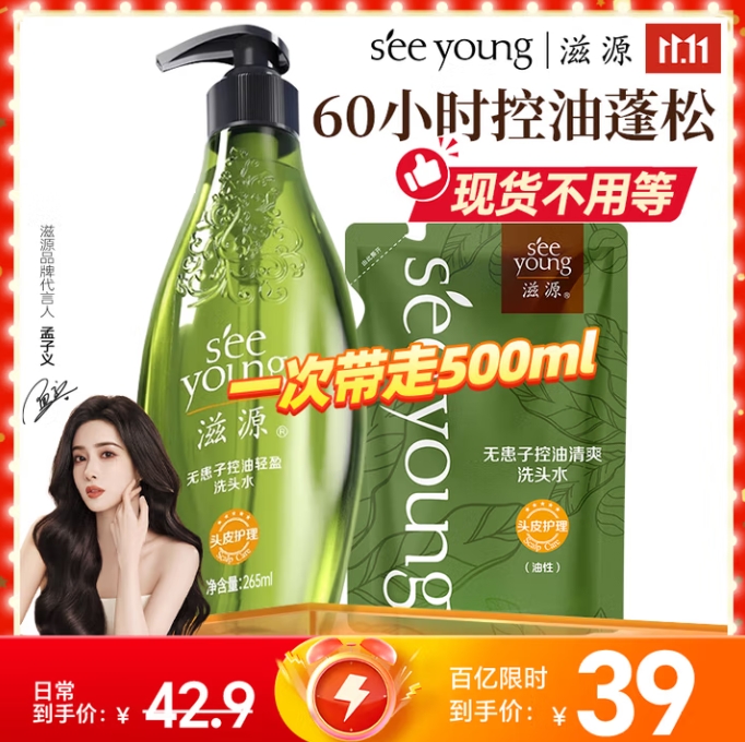 24元/瓶!滋源 控油清爽洗发水共500ml*2件