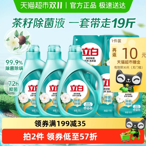 36.8元!立白天然茶籽除菌洗衣液9.5kg(返10元超市赠金后)