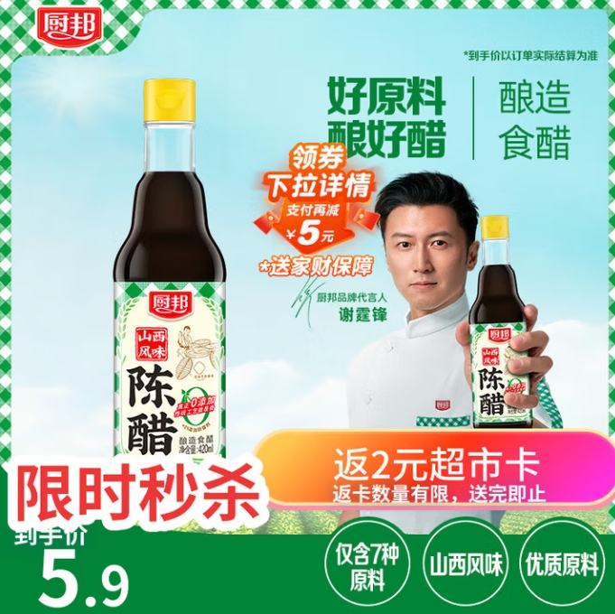 0.9元!厨邦 山西陈醋420ml (返2元EK后)