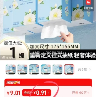 天猫猫猫币膨胀:聪妈/维达/漫花/丽邦挂抽0-1元抢