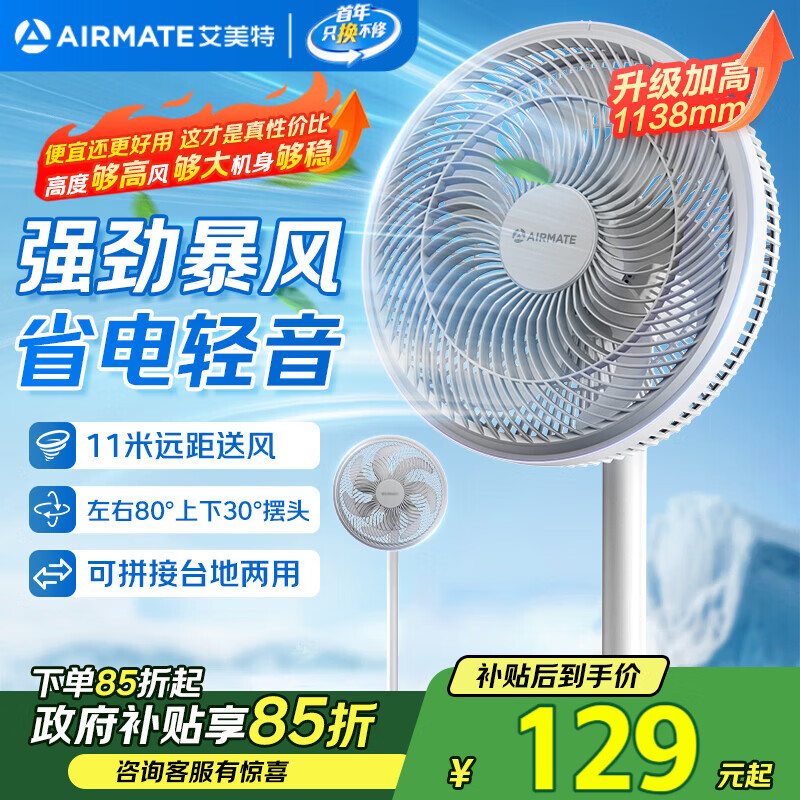 艾美特家用风扇低至109元!七叶大风量+轻音节能,夏日降温神器