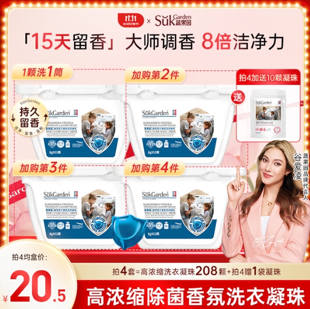 10.37元!自营蔬果园 苍兰香氛洗衣凝珠8g*52颗
