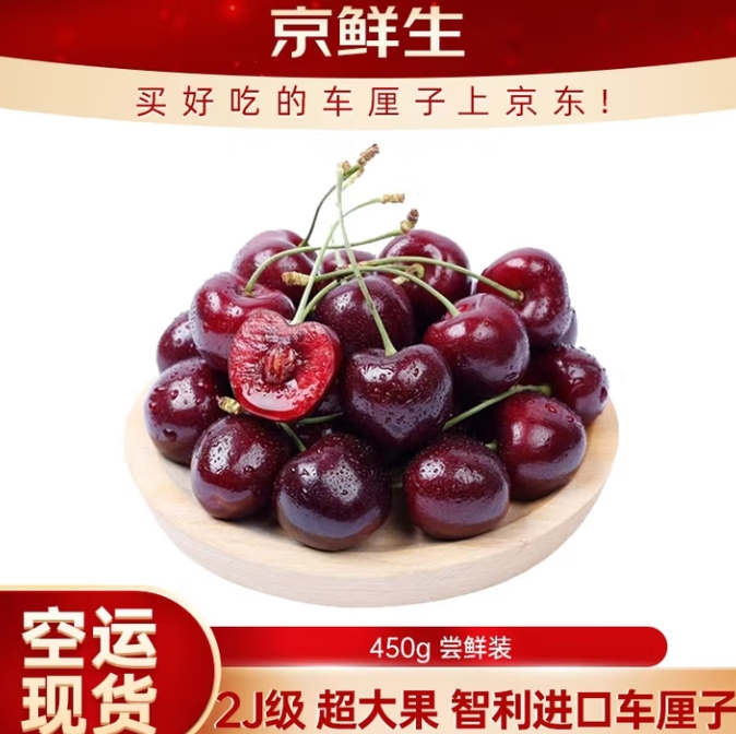 98.9元包邮!自营秘鲁蓝莓4盒装 大果18mm++智利车厘子2J级450g装