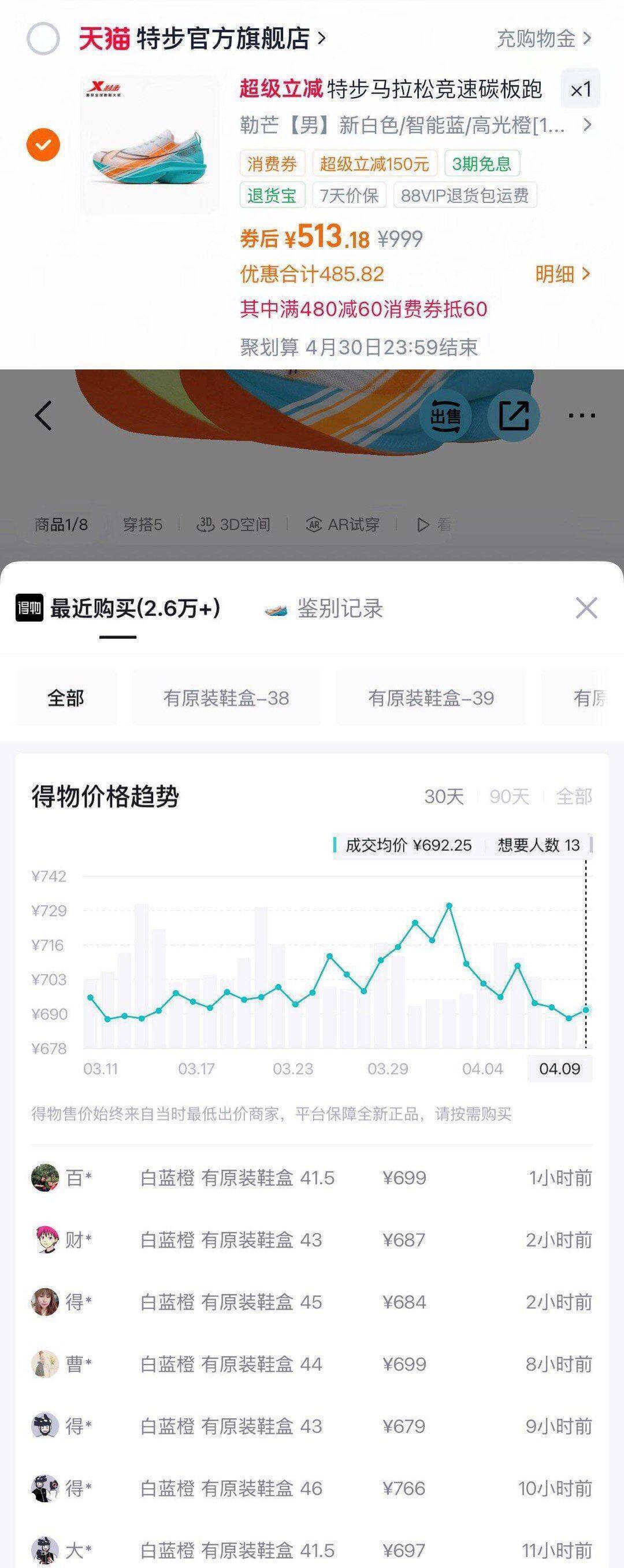 160x6pro勒芒配色鞋仅需471元,得物售价688秒卖豪车