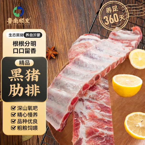 72.5元包邮!鲁南顺发 黑猪肋排骨净重4斤