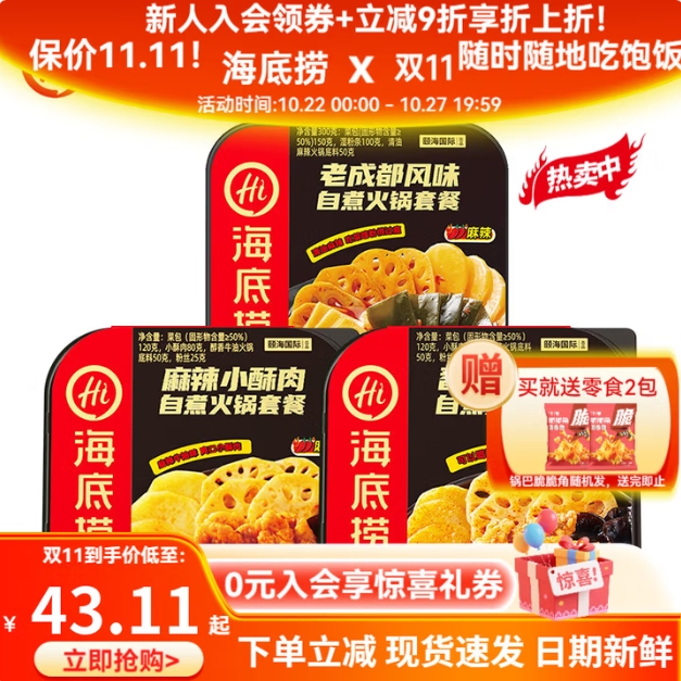 27.4元包邮,海底捞 自热火锅 老成都 麻辣 番茄酥肉共850g