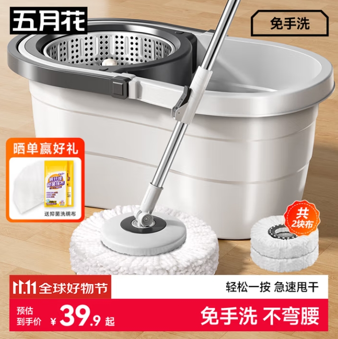 14.15元!五月花旋转拖把带桶一套2头一拖净免手洗杆长120cm