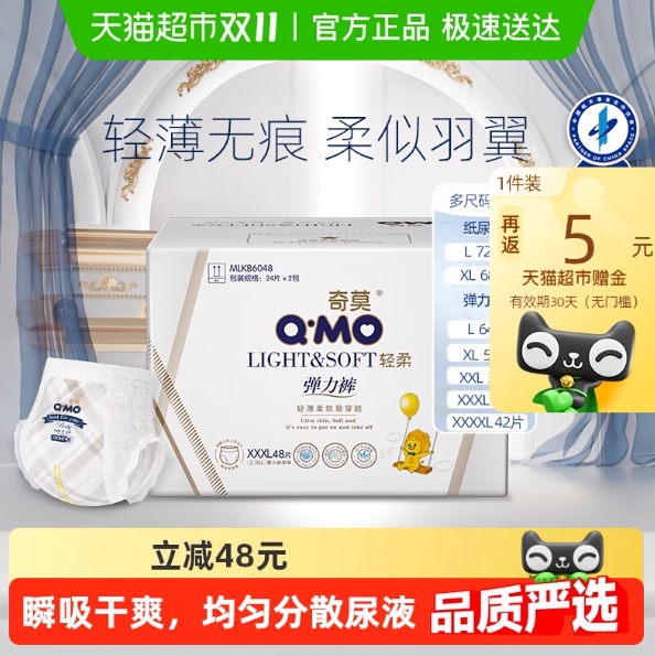 56.8元!奇莫 MO 奇莫 轻柔系列 纸尿裤L72/XL68/拉拉裤 XL56片/XXL52片(尺码可选)
