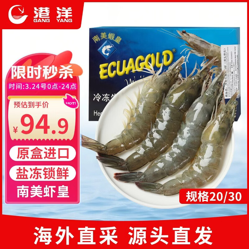 自营港洋超大厄瓜多尔白虾3斤仅需94.9元
