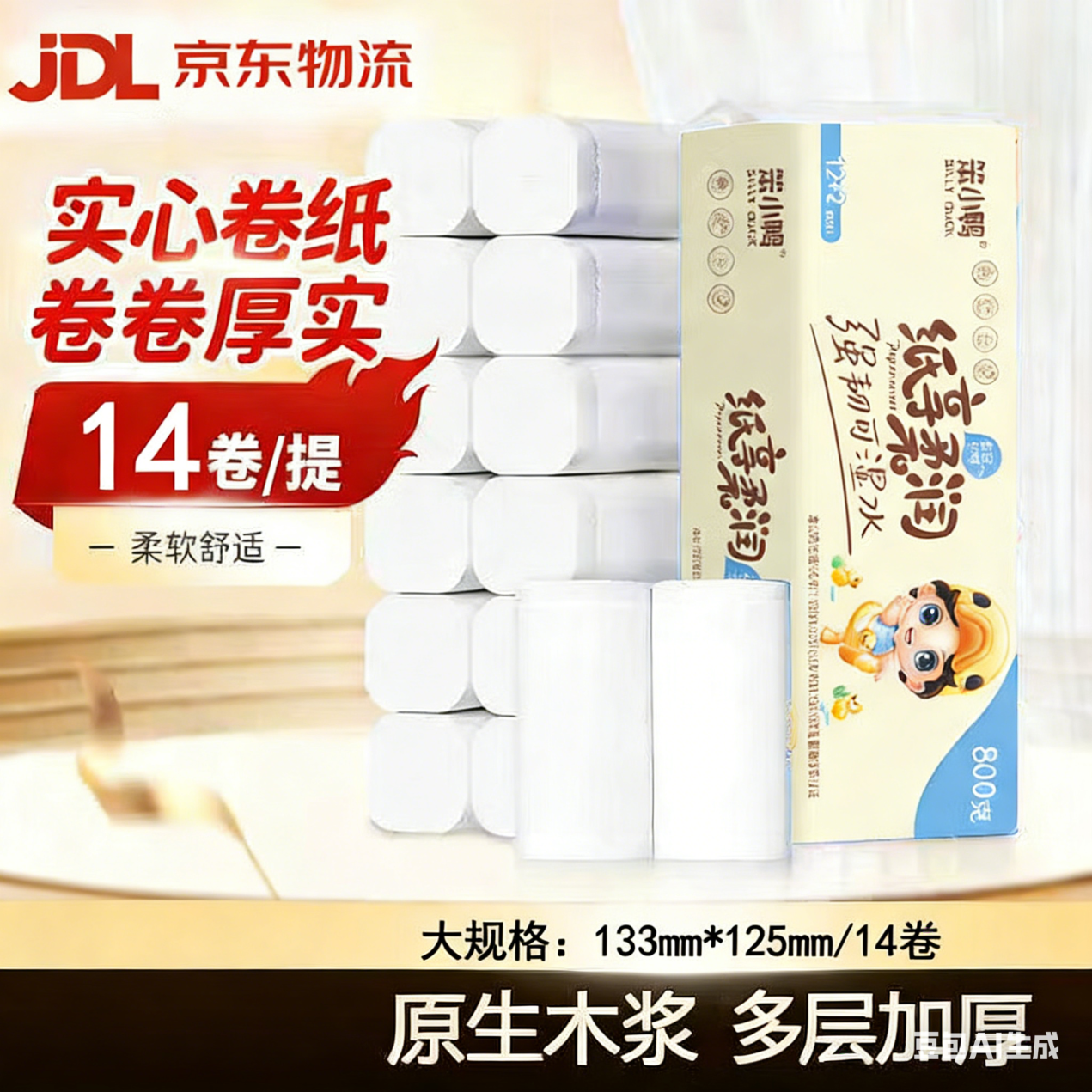 笨小鸭卷纸800g*14卷仅需4.99元