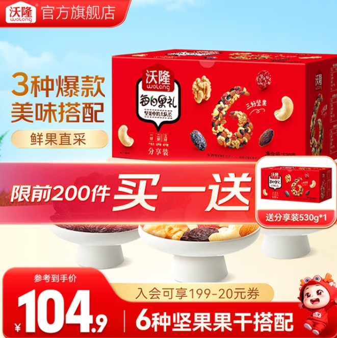 34元/箱!沃隆 每日坚果零食礼包530g*2箱
