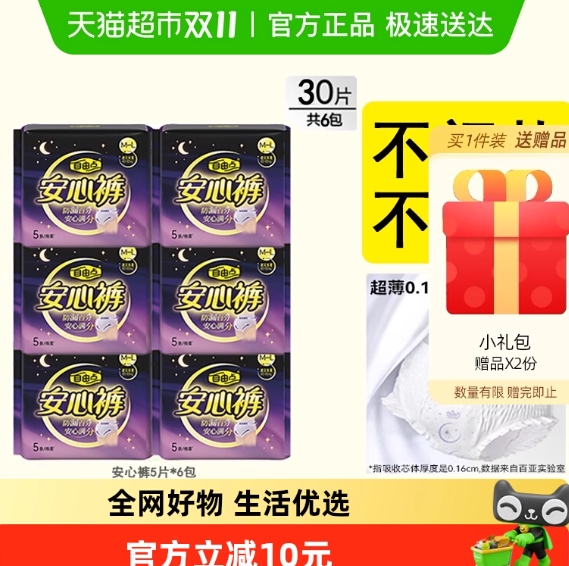 31.5元包邮!自由点安心裤组合30条+贈卫生巾2片+安心裤5条
