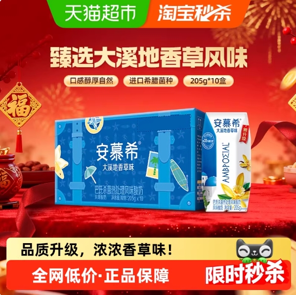 24.9元包邮!安慕希 香草味酸奶205g*10盒整箱