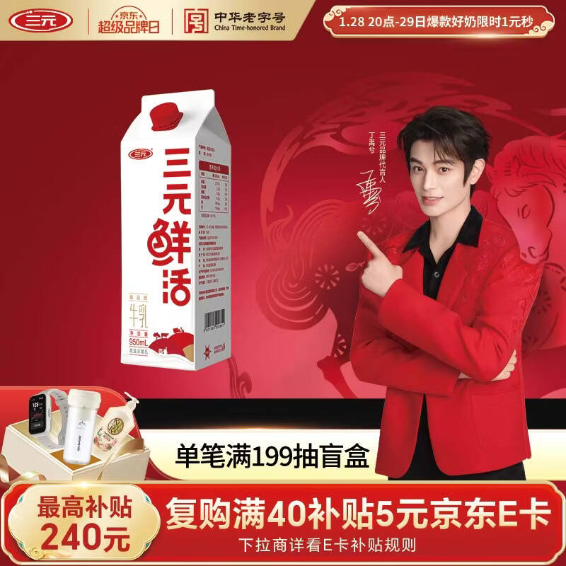 三元鲜活高品质牛乳950ml/盒 黑五特惠