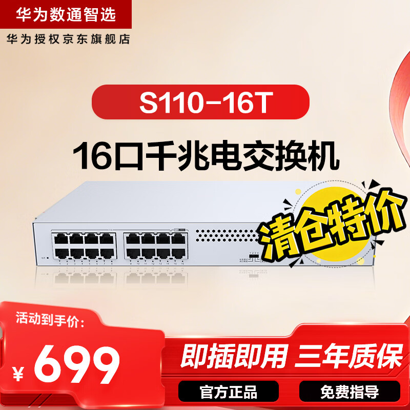 华为坤灵S110-16T全千兆交换机,8折到手价仅需559元