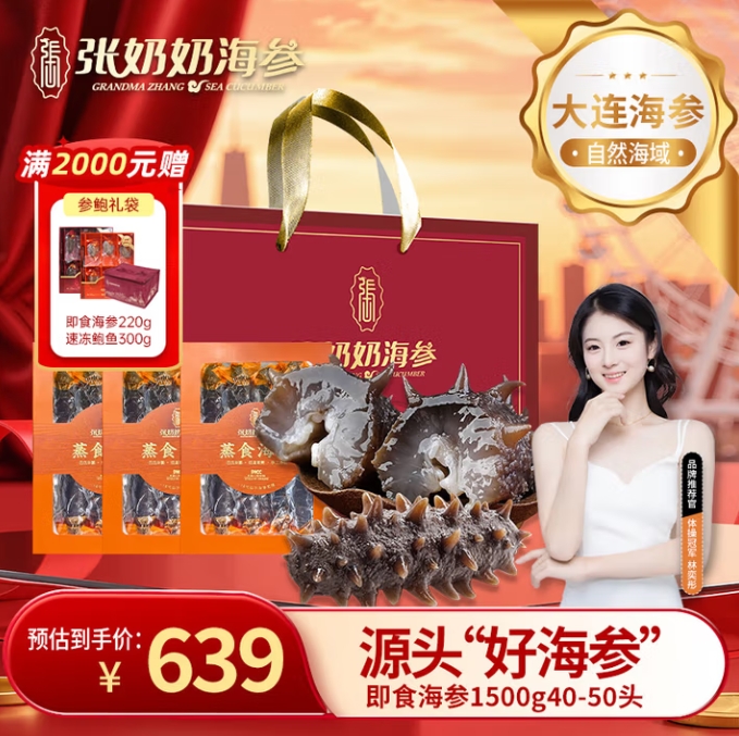 388元包邮!张奶奶大连即食海参3斤 40-50只礼盒款