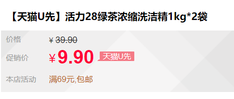 【天猫U先】售价9.9元包邮,到手2瓶餐洗净。