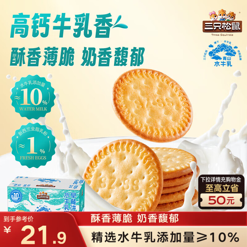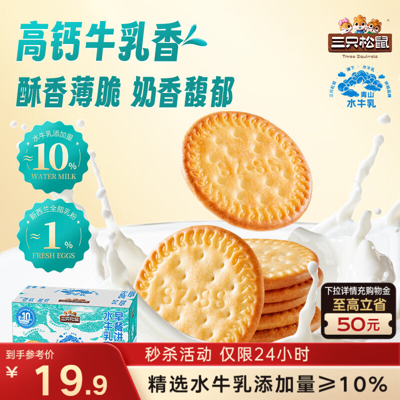三只松鼠水牛乳高钙早餐饼干1000g 9.9元